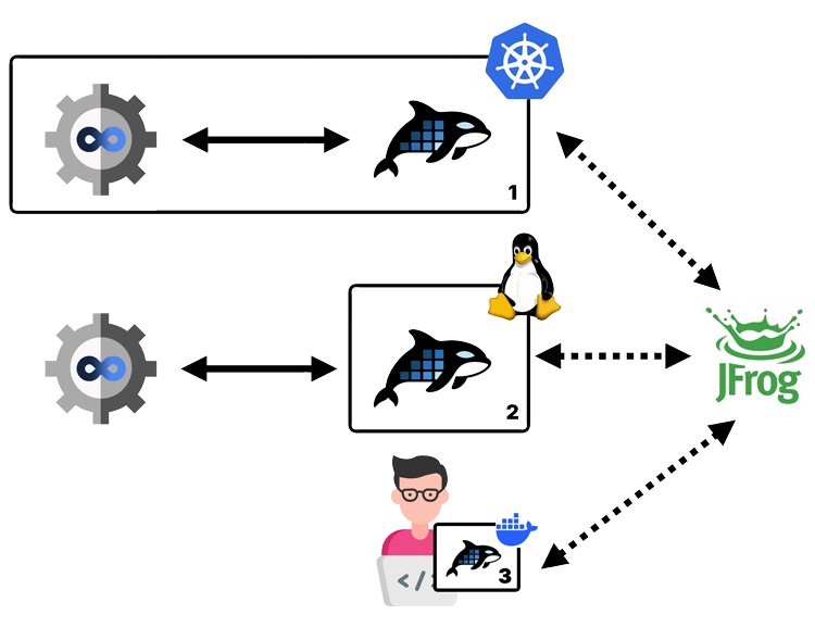 The Orca deployments connect to the same Artifactory setup and offer the following benefits: