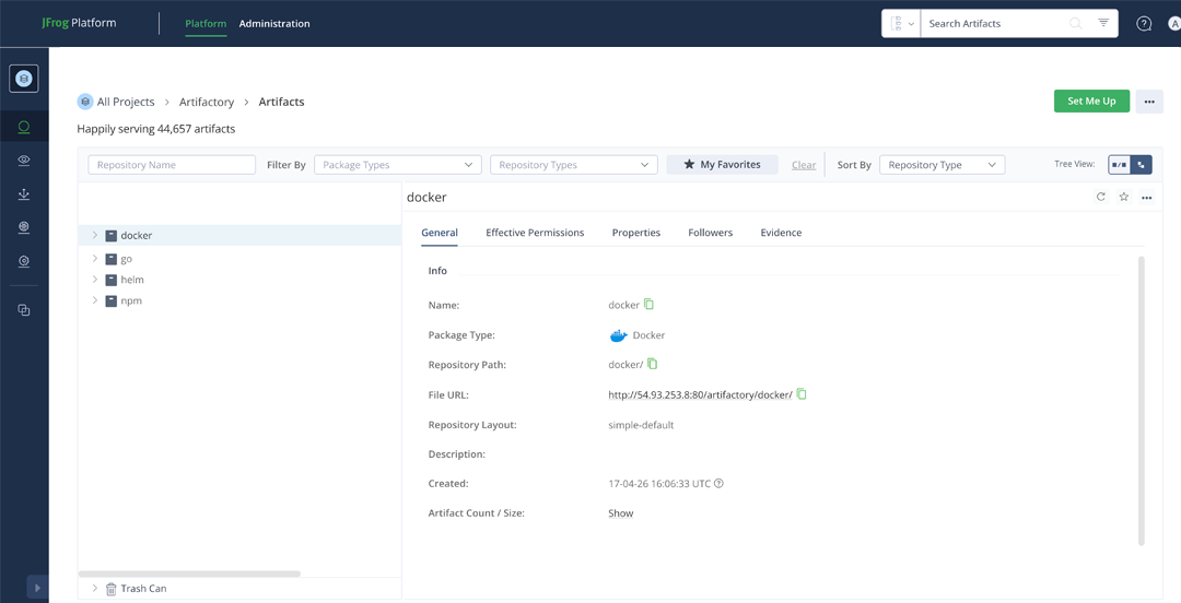 JFrog Artifactory is a Universal Repository Manager that stores and delivers artifacts as part of the software supply chain. Artifactory provides private registries with centralized management and access controls for a large variety of artifact types.